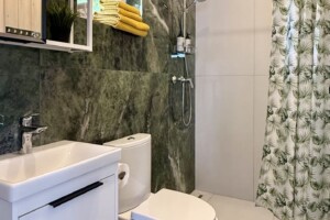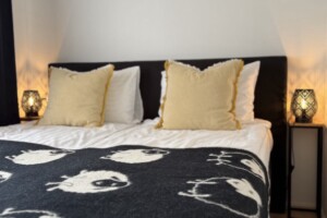 Antrasis mūsų sukurtas ir pačių pastatytas karkasinis namelis, kuris išsiskiria šiuolaikišku, moderniu stiliumi, vyrauja klasikinės balta – juoda spalvos. Gerai apšiltintas, 30 kv.m. namelis turi vieną atskirą miegamąjį kambarį, bendrą kambarį su virtuvėle ir valgomojo zona bei tualeto su dušu patalpą. Svečių komfortui užtikrinti yra pilnai sukomplektuota virtuvės zona, oro kondicionieriai ir šaldytuvas. „Žalčio guolis“ yra keturvietis namelis, su galimybe pristatyti papildomą lovą penktam svečiui, tad jis idealiai tinka poroms, šeimoms ar draugų bei kolegų kompanijoms.